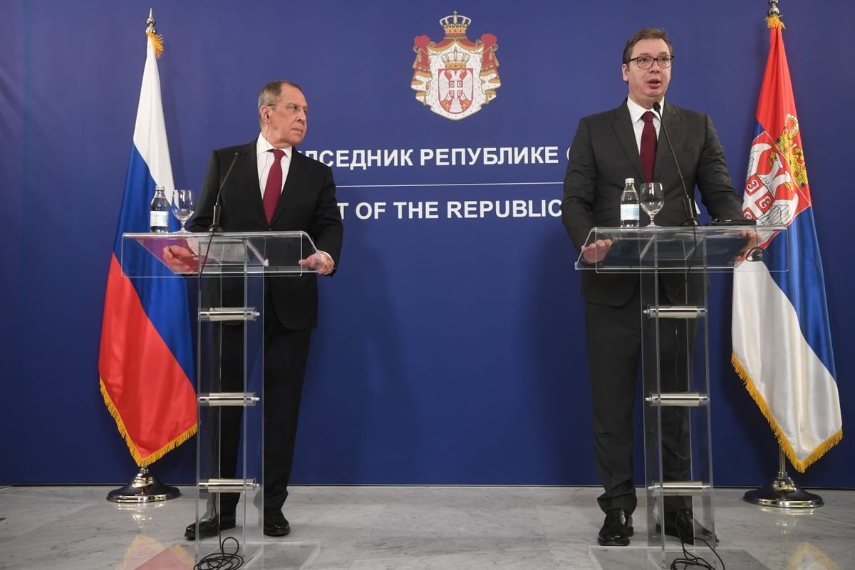 塞尔维亚总统武契奇15日与到访的俄罗斯外长拉夫罗夫进行了会谈。
