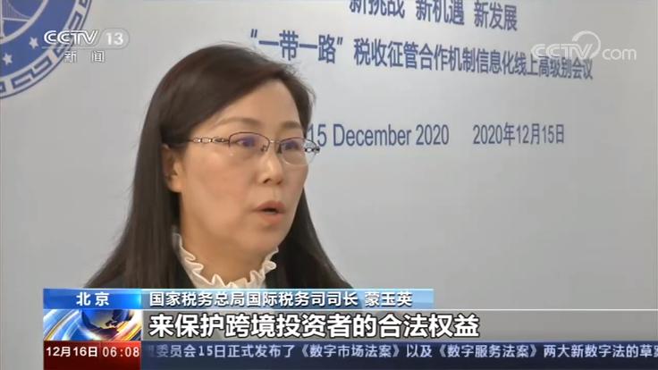 国家税务总局国际税务司司长 蒙玉英:在“一带一路”沿线,需要税收发挥它的职能作用,来保护跨境投资者的合法权益。(总台央视记者 王楠 杜雷鸣 薛建启)
