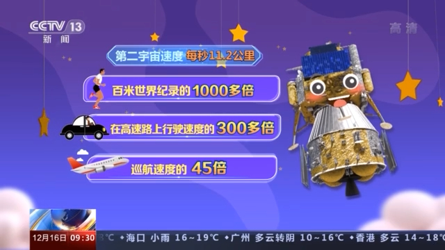 嫦娥五号:这么说吧,一百米跑的世界纪录是9秒58,相当于每秒10.4米;汽车在高速公路上行驶,时速120公里,相当于每秒33米;民航客机的高空巡航速度按每小时900公里计算,相当于每秒250米。那么,第二宇宙速度,就相当于民航客机巡航速度的45倍,汽车在高速路上行驶速度的300多倍,百米世界纪录的1000多倍。