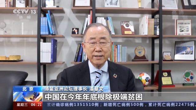 博鳌亚洲论坛理事长 潘基文:中国在今年年底根除极端贫困,使得中国在发展中国家之列率先实现了可持续发展目标当中的消除贫困目标。
