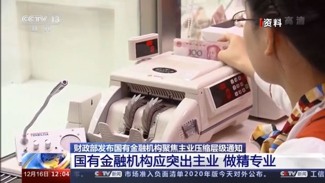 财政部昨天(15日)发布关于国有金融机构聚焦主业、压缩层级等相关事项的通知,要求引导国有金融机构要突出主业,回归本业,国有金融机构及其所属各级子公司之间不得进行虚假注资、循环注资。最终促进国有金融机构持续健康经营。
