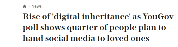 △英国《每日电讯报》:YouGov民调显示,四分之一的人计划把社交媒体交给自己的至亲