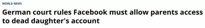 死者父母只好提起法律诉讼。官司历时6年,一直打到德国最高法院,高法最终在2018年判决脸书应遵守用户协议,死者父母作为女儿帐户的继承人,可以要求脸书恢复帐号登录权限、提供内容数据。