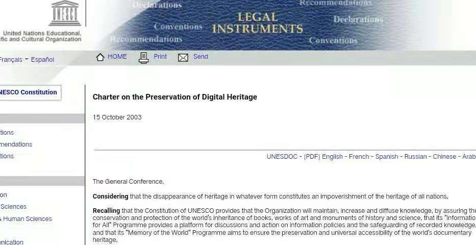△联合国《保护数字遗产宪章》