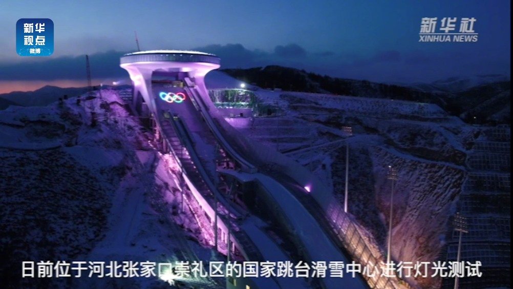 【“雪如意”亮了 #国家跳台滑雪中心进行灯光测试#】日前,位于河北省张家口市崇礼区的国家跳台滑雪中心进行灯光测试。一起来看北京2022年冬奥会的主要比赛场馆之一的绚丽之光。(记者杨帆) 新华视点的微博视频