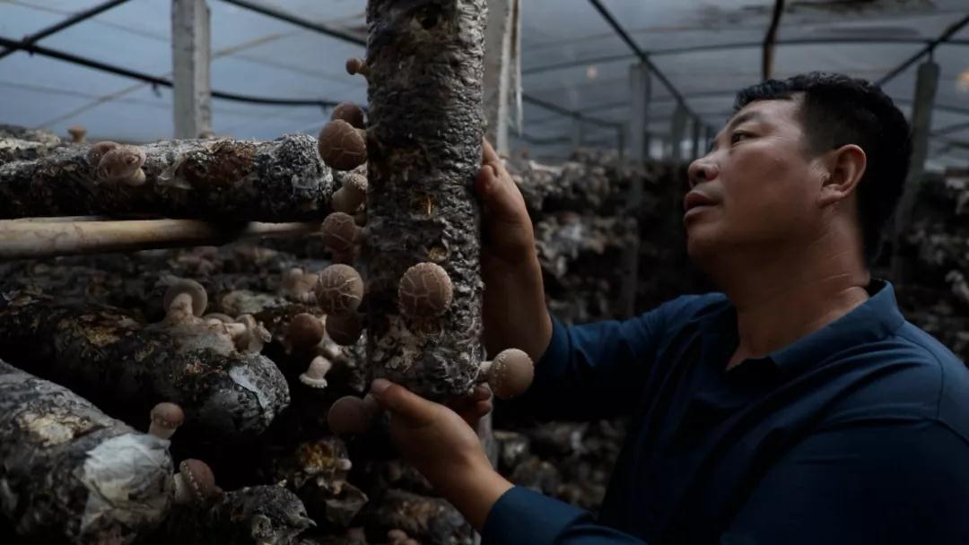 “村民都选他,就觉得他有能力把这个撑起来。当时这边都没有建起来,这边都没有塑料布,都是他当书记的时候,之前投资那个人破产了,棒子都在前面都烂掉了,然后他把塑料布都搭上,香菇都上架,然后出的菇。”
