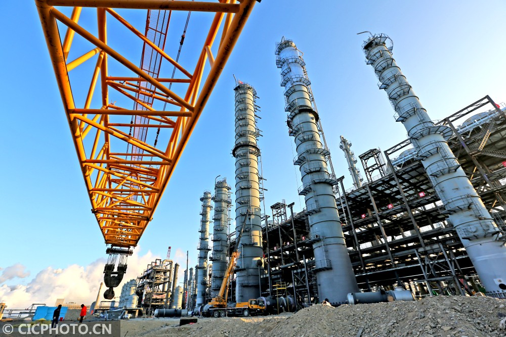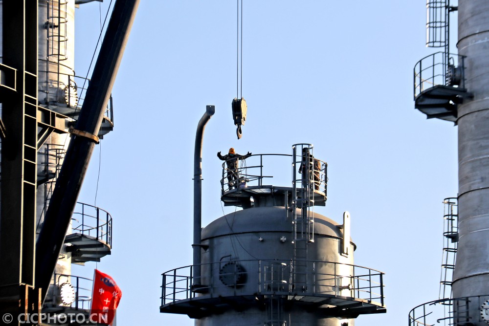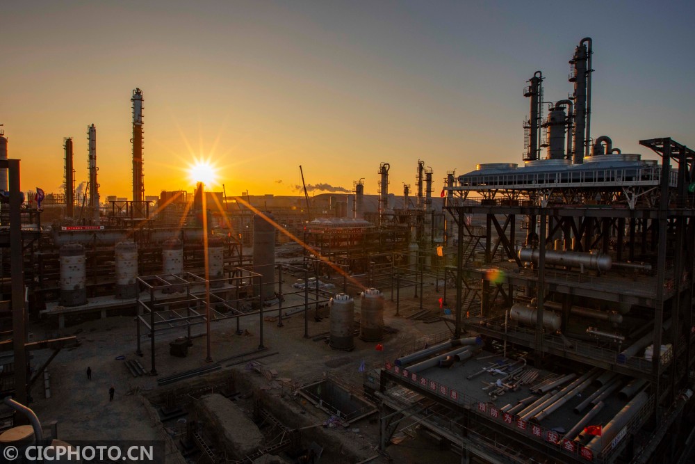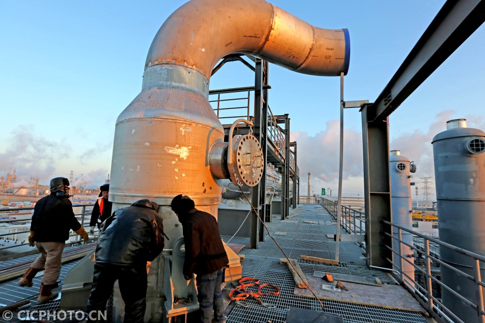 以上图片:2020年12月12日,工人们在新疆哈密市伊吾县淖毛湖工业园区荒煤气综合利用项目建设工地忙碌。CICPHOTO/蔡增乐 摄