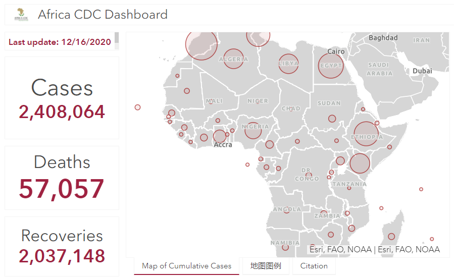 据非洲疾控中心统计数据,截至当地时间12月16日中午12时,非洲大陆累计确诊病例达2408064例,累计死亡57057例,累计治愈2037148例。(总台记者 吴婷)