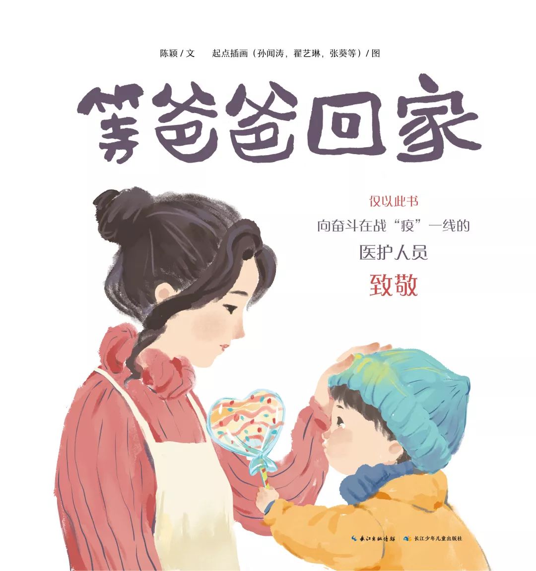 《等爸爸回家》是由大陆作家陈颖与10位插画家共同完成的大陆抗疫题材儿童绘本。以孩童眼光为视角,表达了对抗疫一线的爸爸无尽的牵挂与思念。