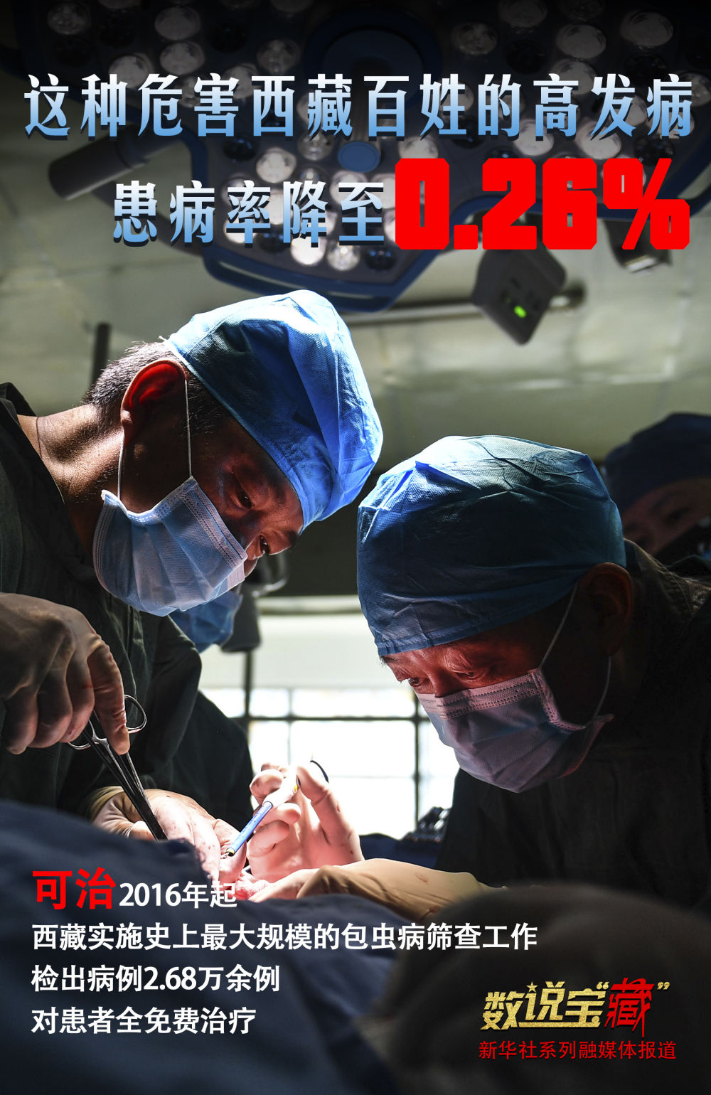 在全人群筛查的基础上,为有效开展包虫病治疗,西藏统筹农牧区基本医疗保险、大病保险和政府财政三方面资金,在区内确立定点医院,开设包虫病床位,以保障符合手术条件的患者“不出藏、无预约、无等候、零支付”。