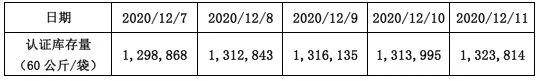 表1:ICE(纽约)“C”型咖啡认证库存量