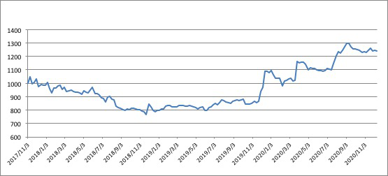 图1:新华·云南(普洱)咖啡价格指数走势图