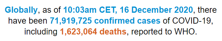 世卫组织:全球新冠肺炎确诊病例超过7191万例