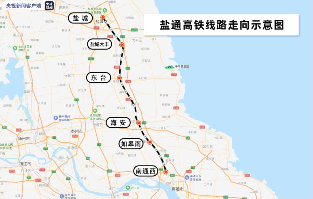盐通高铁是国家“八纵八横”高铁网中沿海铁路的重要组成部分,也是首条全线位于苏北地区时速350公里的高铁。盐通高铁北起徐盐高铁盐城站,南至沪苏通铁路南通西站,设盐城、盐城大丰、东台、海安、如皋南和南通西6座车站。正线全长156.6公里,设计时速为350公里。盐通高铁的开通对促进长三角一体化发展,助力“一带一路”建设和长江经济带发展具有重要意义。(总台央视记者 黄成)