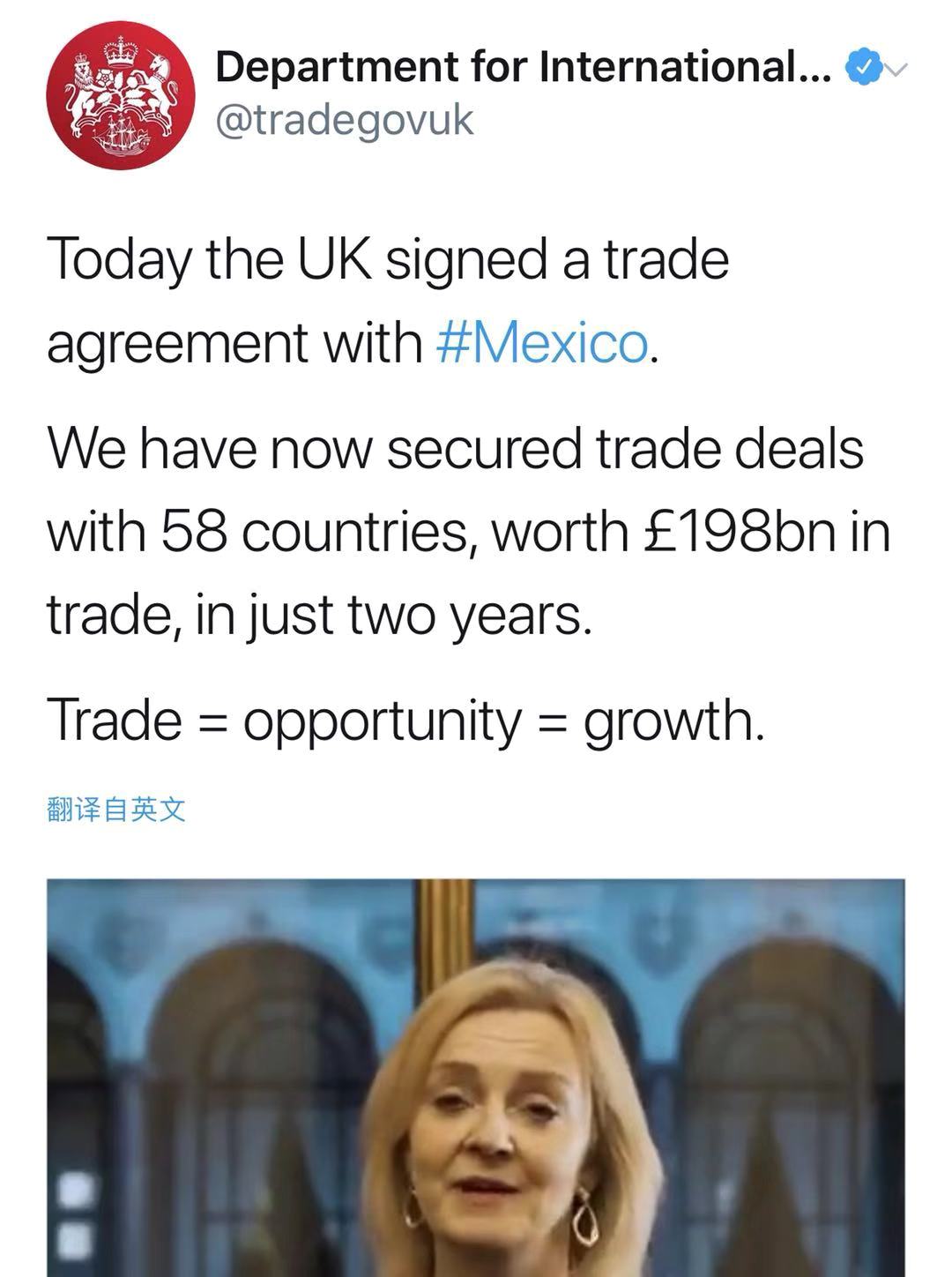 当地时间12月15日,英国和墨西哥正式签署了贸易协议。根据该协议,英国脱欧后仍然可以保留此前欧盟-墨西哥的贸易协议条款。双方承诺,将于明年开始就新的贸易协议展开谈判。