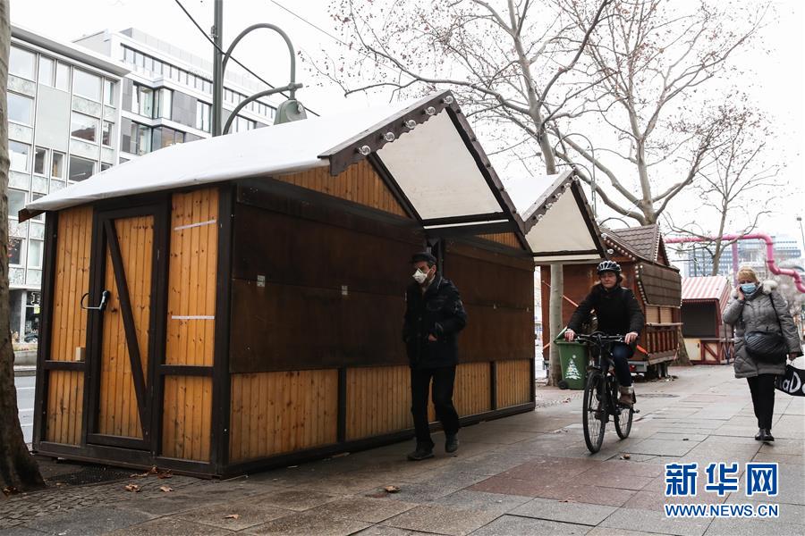 12月16日,在德国首都柏林,行人经过关闭的“圣诞木屋”。 德国联邦与各州政府13日商定,鉴于该国新增新冠确诊病例数和死亡病例数居高不下,将从16日起进一步收紧疫情防控措施直至明年1月10日。 新华社记者 单宇琦 摄