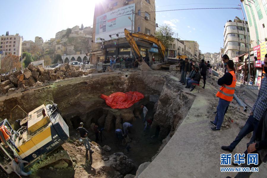 12月14日,在约旦首都安曼,考古人员在遗址挖掘现场工作。新华社发(穆罕默德·阿布·古什摄)