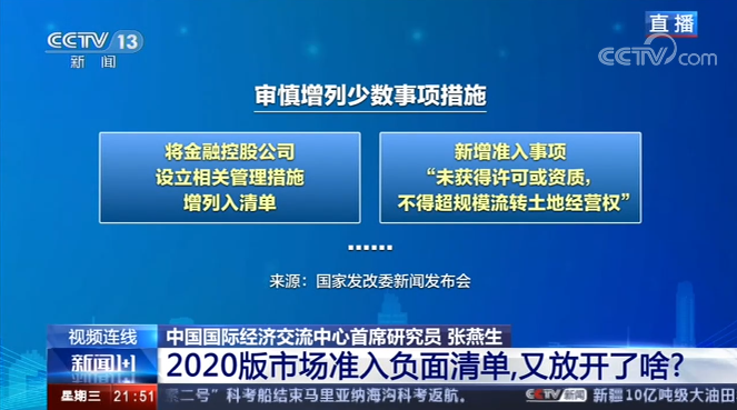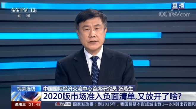 中国国际经济交流中心首席研究员 张燕生:今年是新冠疫情在全球蔓延和扩散的一年,全球经济非常不好。今年的市场准入负面清单,其实它是我们国家投资环境的重大改革。因为今年是“十三五”的收官年,从整个“十三五”的角度看,2016年在4个省市试点时328项,今年缩减到123项,这就代表了在“十三五”期间,国家投资环境的重大改革取得了重大进步。另一个方面今年实际上是为下一步,也就是 “十四五”开好局、起好步,怎么能够使国家投资环境进入到市场化、法制化和国际化发展新阶段开了一个头,也为未来30年发展奠定了一个高质量发展的投资环境基础。