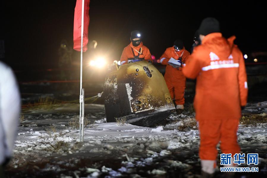 12月17日凌晨,嫦娥五号返回器携带月球样品,采用半弹道跳跃方式再入返回,在内蒙古四子王旗预定区域安全着陆。新华社记者 连振 摄