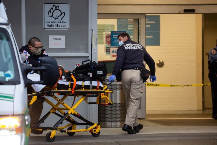 12月14日,在美国纽约,工作人员将一名患者送入医院。新华社发(郭克摄)