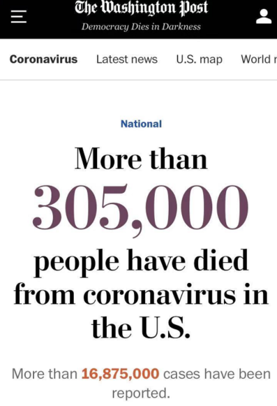△《华盛顿邮报》报道,截至当地时间12月16日,美国已有超过30万人死于新冠肺炎,1681万人确诊