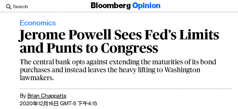 △彭博社评论称,鲍威尔看到了美联储的局限性,并向国会寻求支持