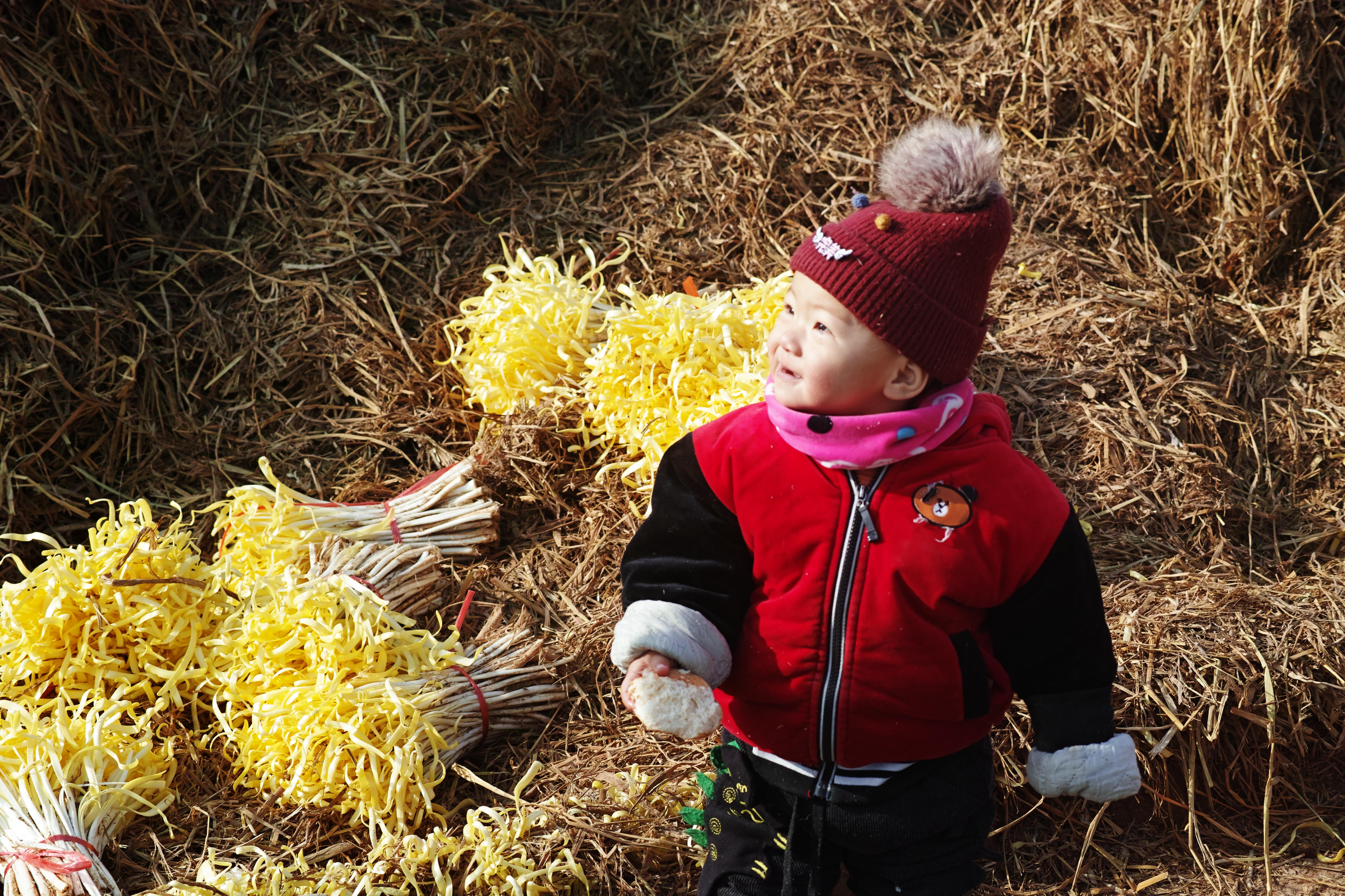 当地一名小孩站在韭黄丰收的地里。 新华社记者 龚哲 摄
