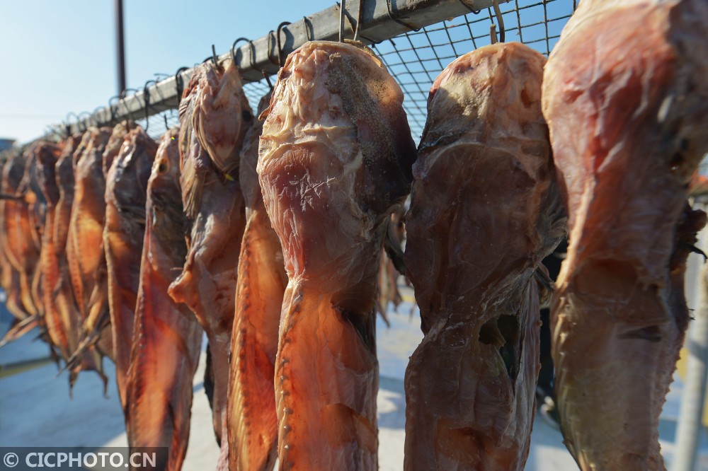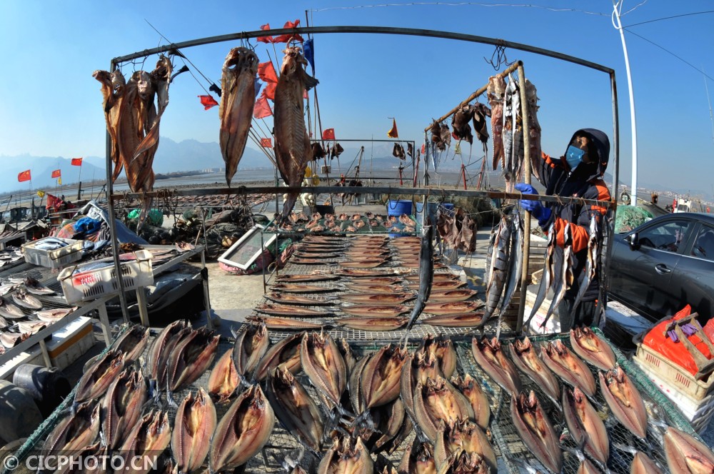 临近冬至,山东省青岛市崂山区沿海渔民趁冬捕末期抓紧时间加工晾晒传统风味鱼干,为新年销售旺季储备干货。近年来,当地渔民利用传统“晒鱼”增加收入,随处可见的晒鱼场也吸引了不少游客前来观光体验这一独特的渔家文化,促进了当地旅游业的发展。