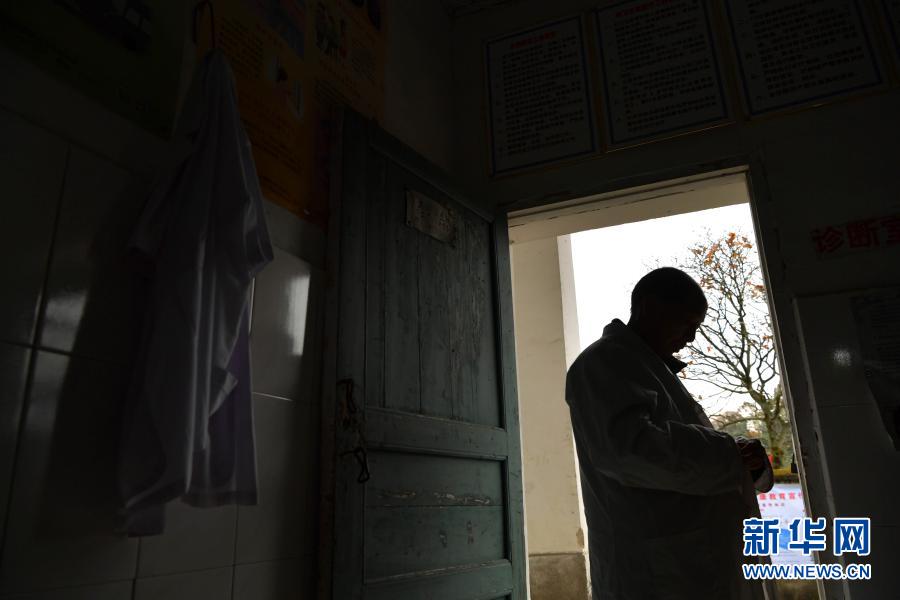 在江西省宜春市宜丰县双木村,钟树新穿上白大褂,等待前来问诊的村民(12月16日摄)。
