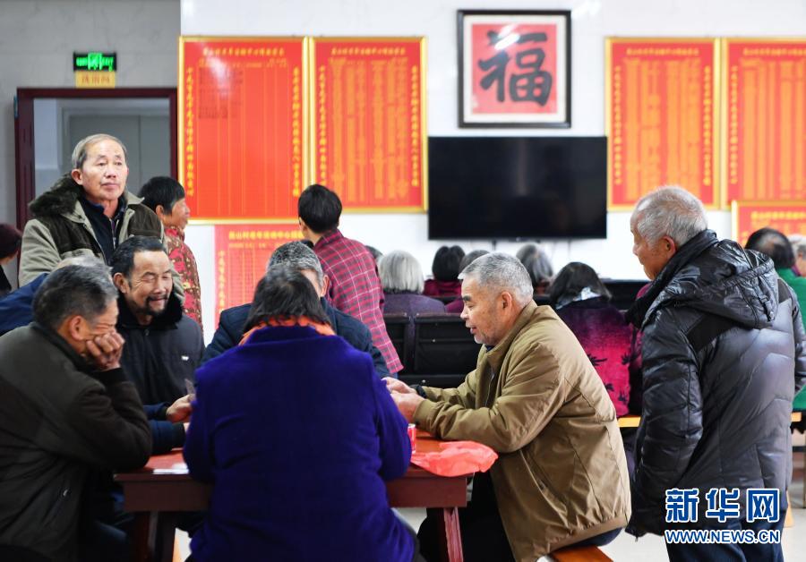 12月17日,在泉州德化县龙浔镇英山村“敬老食堂”,村民们在观看食堂的账目开支情况。