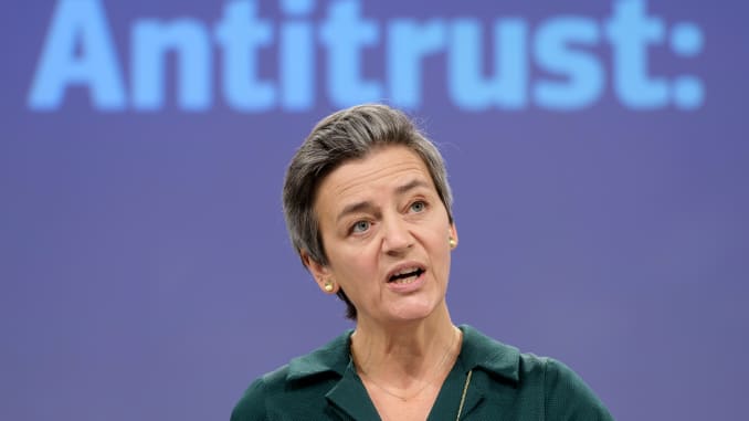 △欧盟委员会执行副主席玛格丽特·维斯塔格解释称,欧盟本次公布的法案草案的施用对象为“大平台”
