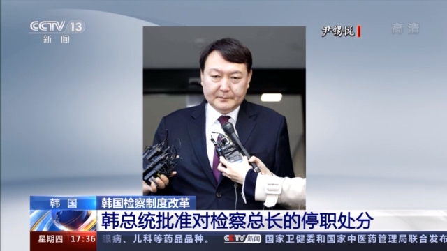 韩国总统府青瓦台发言人郑万昊16日在记者会上表示,文在寅当天傍晚批准了对检察总长尹锡悦进行处分的提请,惩戒决定立即生效。秋美爱当天下午还向文在寅表明了辞职意向。