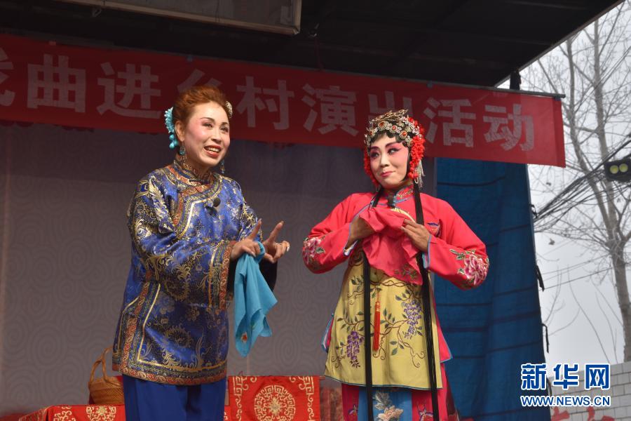 河北省唐山市丰润区评剧团演员在丰润区小张各庄镇演出(12月12日摄)。新华社记者 高博 摄