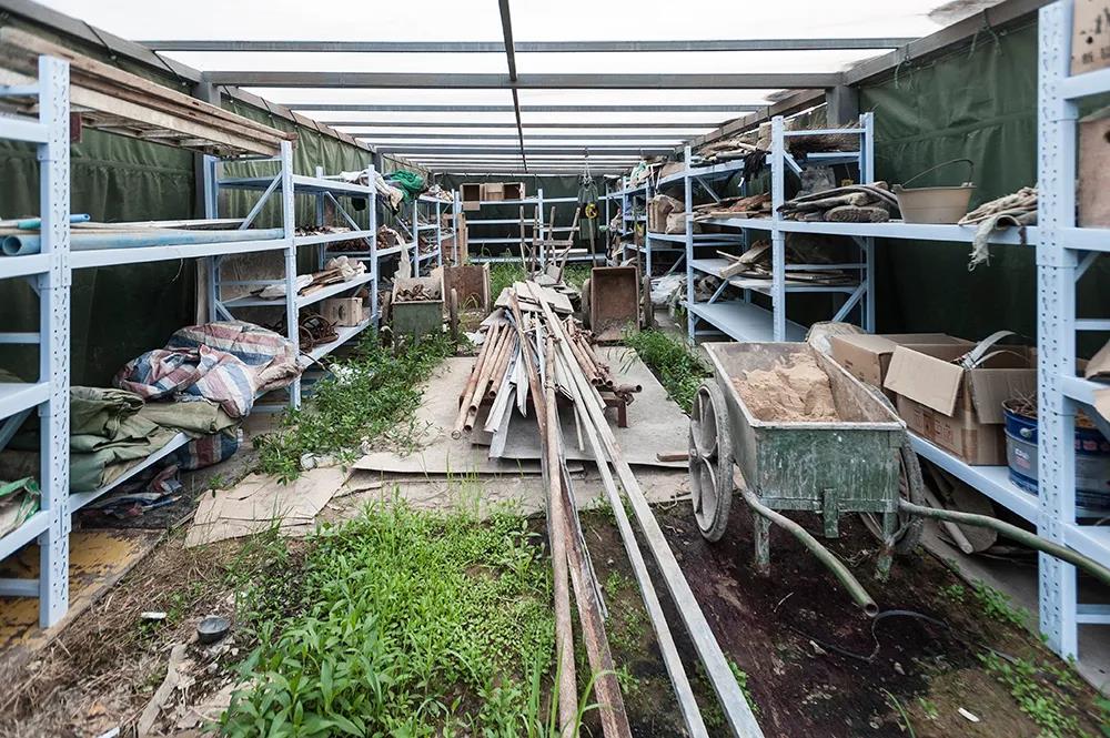 他真的干起了拾荒的活:开始把工人们用剩的铁丝、铁钉、螺丝、破手套,还有他们丢弃的鞋子、牙膏、香烟壳、啤酒瓶都一一检来,摆放在他的工作室——一个离工地一百余米的集装箱内。