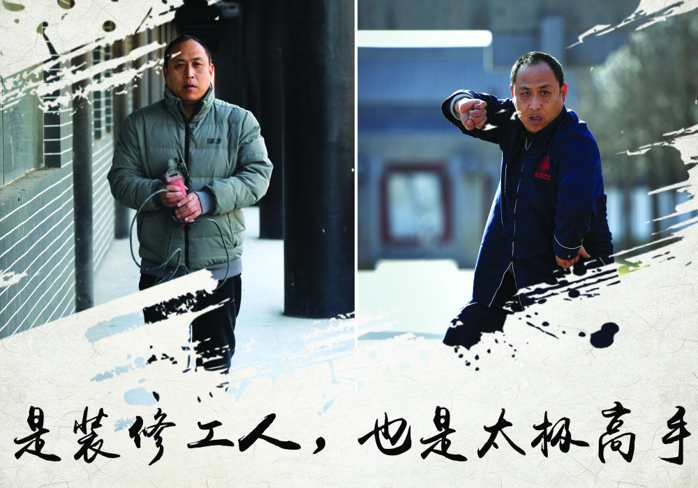 ↑42岁的吴波是装修工人,练习太极拳28年,从事装修行业20年,曾在多项太极拳赛事中获奖。