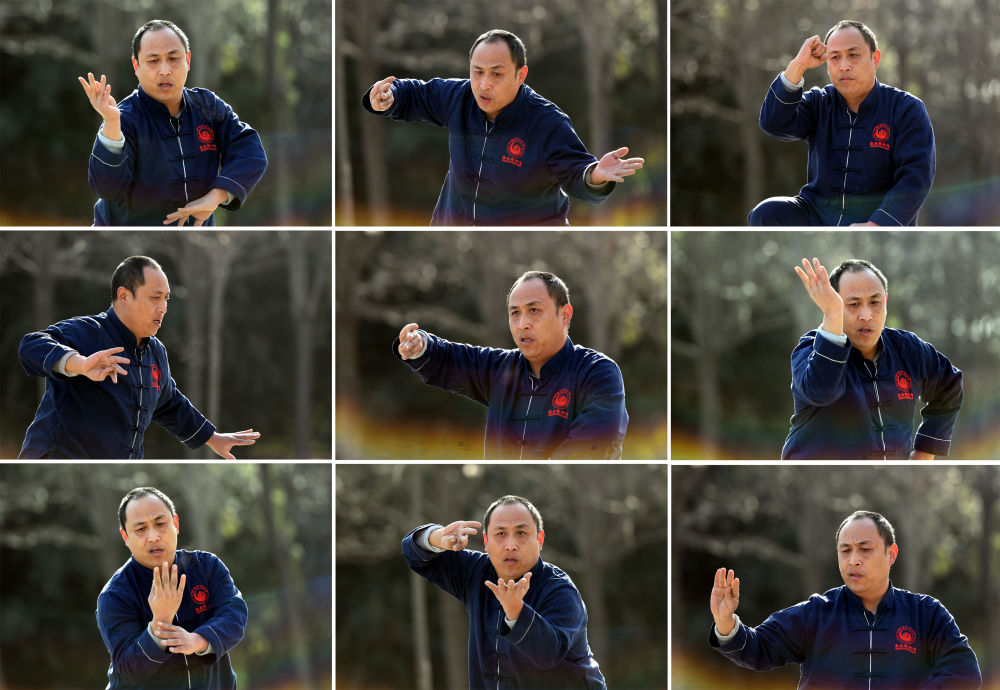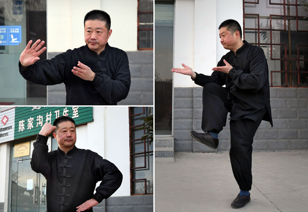 ↑吴波在陈家沟练习太极拳(拼版照片,12月14日摄)。