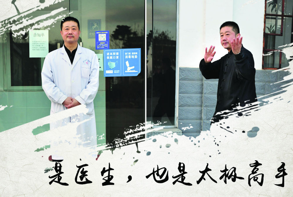 ↑45岁的陈绍杰是陈家沟卫生室的村医,练习太极拳35年,工作之余免费教100多名拳友练太极拳。