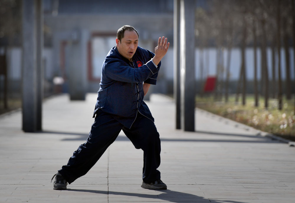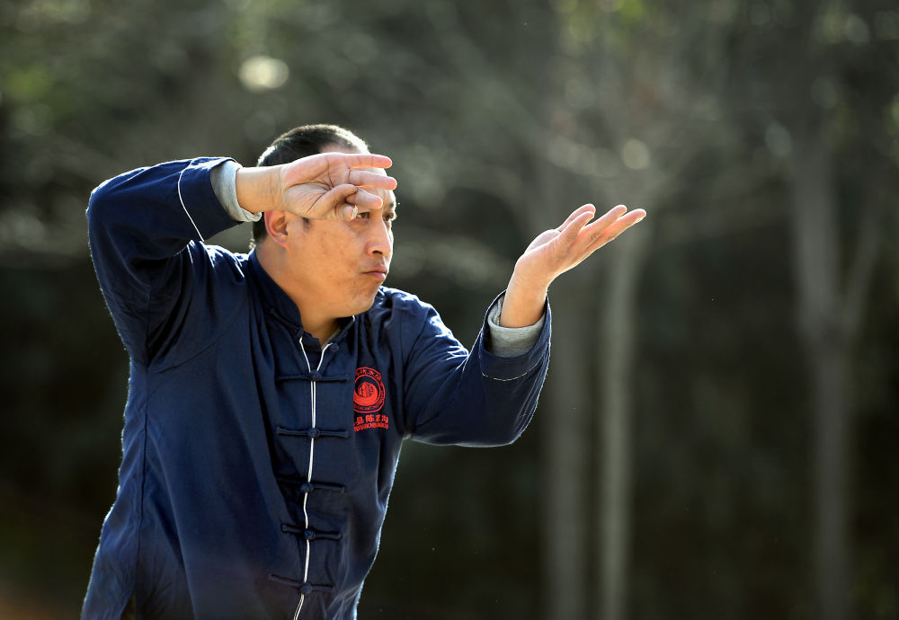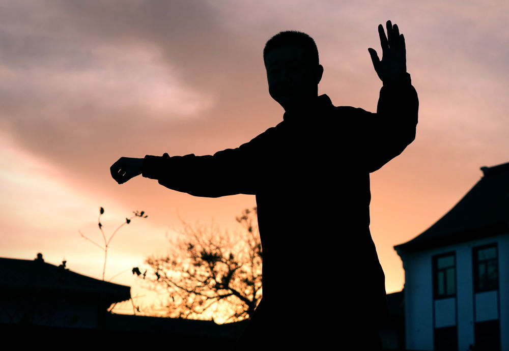 ↑吴波在陈家沟练习太极拳(12月14日摄)。