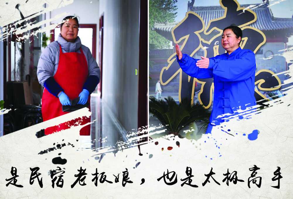 ↑52岁的吴平利是陈家沟一家民宿的老板娘,多年来,她在劳作之余跟随作为拳师的丈夫练习太极拳。