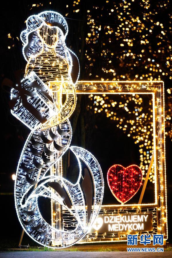 12月16日,波兰华沙点亮彩灯,向抗击新冠疫情的医务人员表示感谢。这处彩灯左侧的美人鱼为华沙的象征,右侧有“感谢医务人员”的字样。