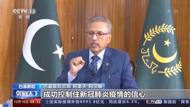 巴基斯坦总统 阿里夫·阿尔维:巴基斯坦和中国进行了新冠疫苗的合作试验,目前巴基斯坦正在进行疫苗的免费测试,我相信中国生产疫苗更多是为了造福人类,而不是商业盈利目的,我希望我们能研制出有效的疫苗分享给世界人民。