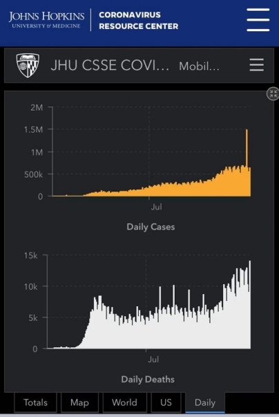 △16日的约翰斯·霍普金斯大学数据分析显示,过去24小时内,美国大约每30秒就有一例新冠死亡上报