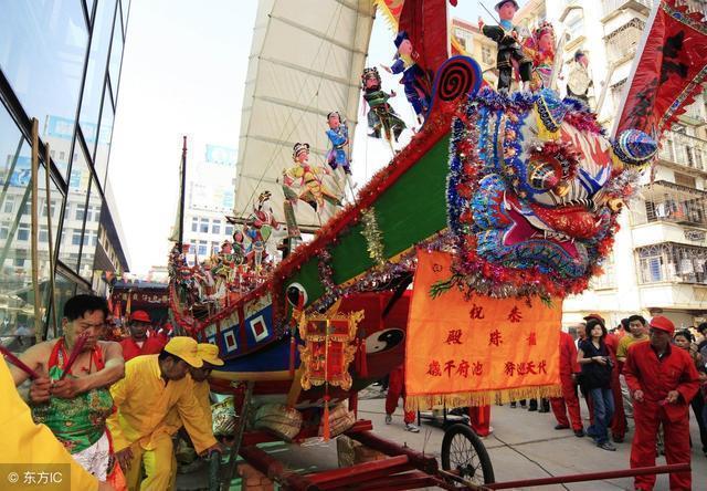 沙坡尾里的厦港龙珠殿的“送王船”仪式逢闰年举办,上个世纪90年代恢复以来,每一届送王船都更加热闹。巡境的队伍有百余人组成。众人抬着“池王爷”的神像坐轿出游,伴着鞭炮锣鼓声,一路有舞狮、舞龙、哪咤鼓乐等民俗表演阵头。