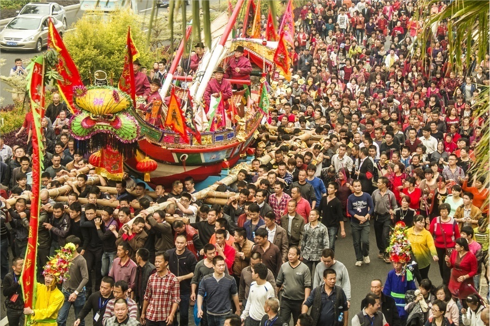 (中国福建省厦门市海沧区送王船仪式活动。摄影:欧阳淑顺)