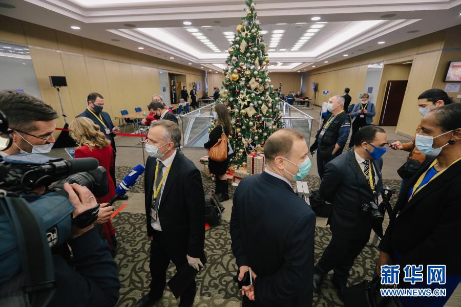 12月17日,在俄罗斯首都莫斯科,媒体记者等待入场参加年度记者会。