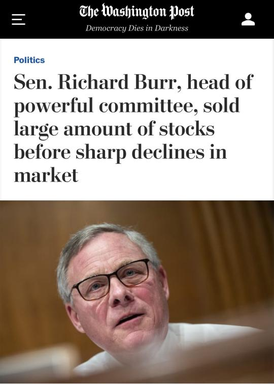 △《华盛顿邮报》报道,理查德·伯尔对美国民众表示疫情可控后,自己却私下抛售大量股票