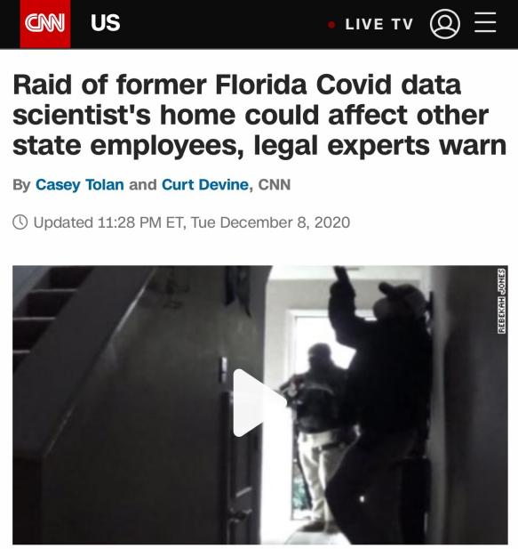 △CNN报道,佛罗里达州警方对疫情数据专家进行“抄家”,没收了存有大量数据的手机、电脑等电子产品