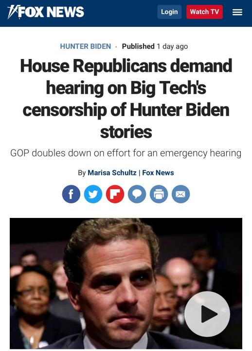△福克斯新闻报道,共和党议员再次要求就社交媒体公司的言论审查机制举行听证会