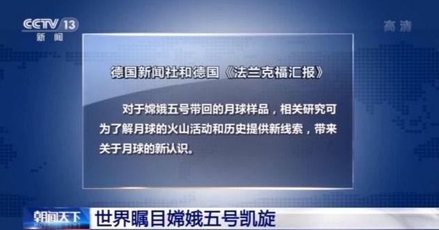 德国新闻社和德国《法兰克福汇报》都报道说,对于嫦娥五号带回的月球样品,相关研究可为了解月球的火山活动和历史提供新线索,带来关于月球的新认识。