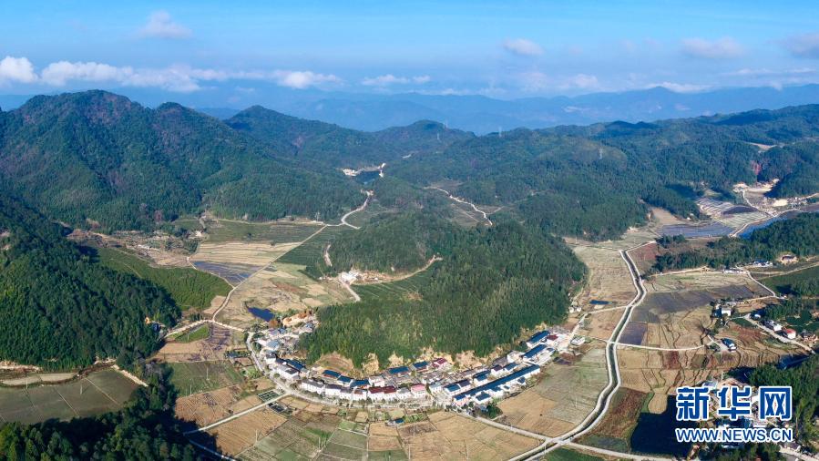 这是11月26日拍摄的以观鸟旅游而闻名的福建省三明市明溪县夏阳乡紫云村生态景观(无人机照片)。